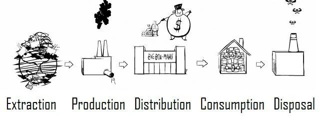 Illustration of the Linear Materials Economy from The Story of Stuff by Annie Leonard
